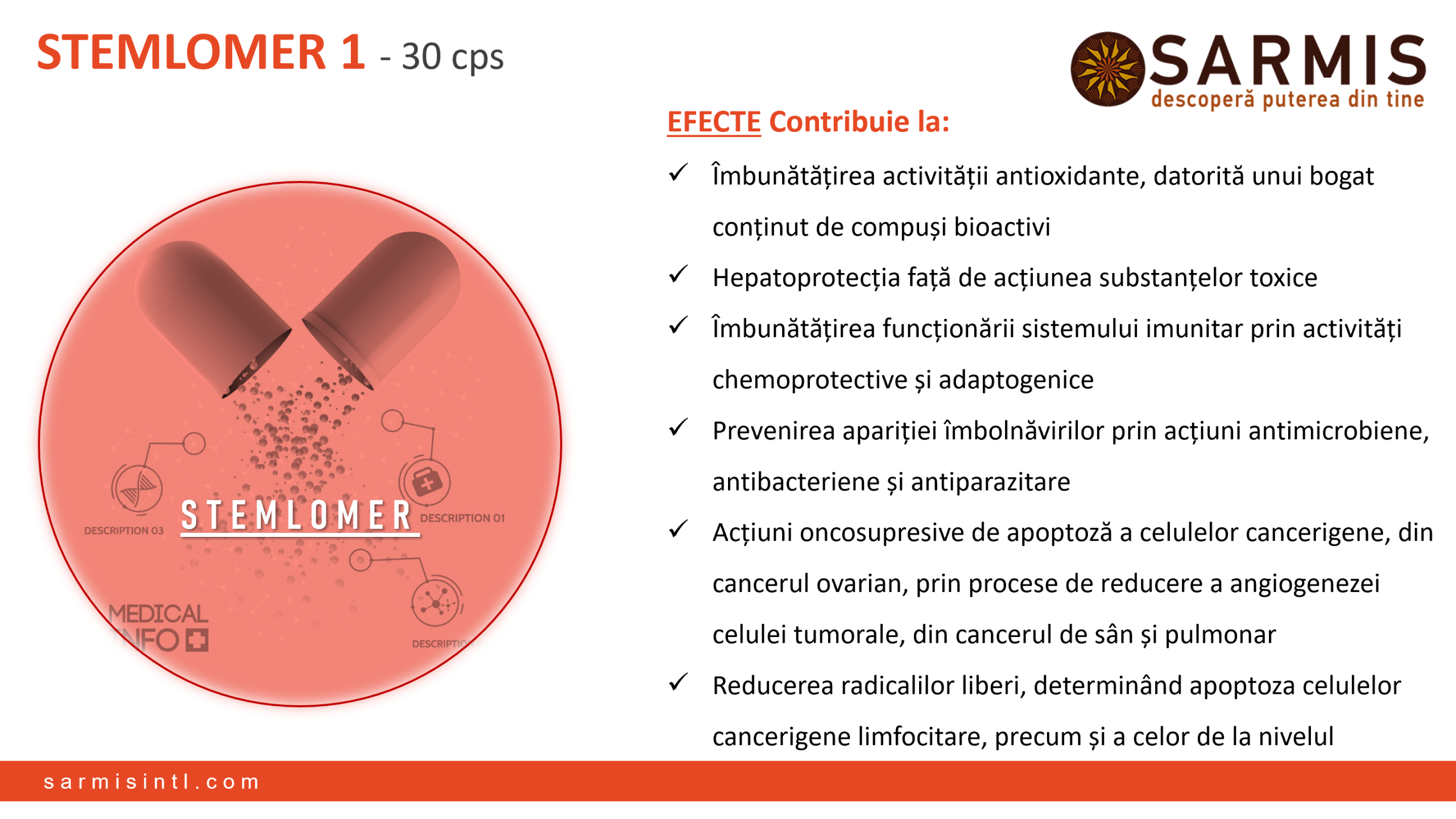 Etichete: Antioxidant, Barbati, Bila, Cancer, Cardio-Vascular, Colesterol, Detoxifiere, Diabet, Digestie, Dureri Reumatice, Echilibru psihic, Ficat, Genito-urinar, Glicemie, Guta, Impotenta, Imunitate, Inflamator, Intoleranta Histamina, Produse SARMIS, Pulmonar, Regenerare celulara, Respirator, Rinichi, Seniori, Sistem nervos, Sportivi, Stomac